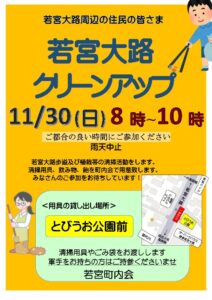 11月30日(日曜日)8時~10時に若宮大路歩道および植栽帯の清掃活動を行います。🍂🧹今回は、8時スタートです。ご都合の良い時間にご参加ください。🍁 <用具の貸出場所>は とびうお公園前です。皆様のご参加をお待ちしていま […]