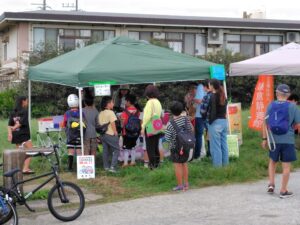 『波音聞こえる若宮のお祭り みんなでワイワイ楽しもう!』をテーマに行ったお祭りですが、今年は、新たに子ども会ゲームコーナーでの「バルーンアート」のプレゼントや3Rコーナーでは「復活!ごみ分別クイズに挑戦」の催しなどを行いました。