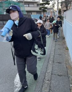 2025年12月26日(金)16:00~約40分間 若宮子ども会の子どもたちと一緒に拍子木を鳴らしながら町内をパトロールして、火の用心と詐欺犯罪への注意を呼びかけました。若宮町内会・若宮子ども会から17名のご参加をいただきました。