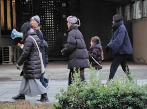 子どもたちの元気な声と拍子木が響き渡ると、若宮大路の歩道を歩いていた方が「火の用~心」と一緒に口ずさんだり、外国の観光客の中にはカメラを向ける方もいらっしゃいました。